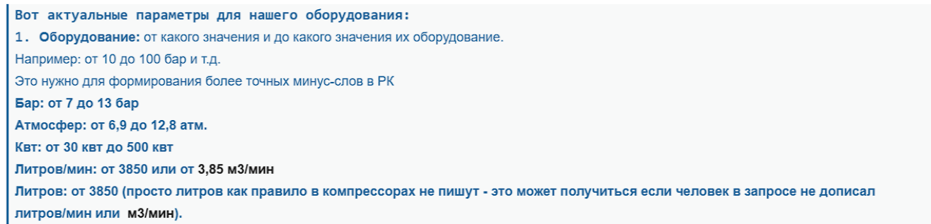 И только после этого я занялся семантикой так, как это нужно в оборудовании. Потому что запросы вроде “компрессор” слишком широкие - если не разложить спрос и не отфильтровали лишние запросы, вы будете стабильно оплачивать “чужую” аудиторию. Поэтому ядро собирал и чистил тщательно: группировал по типам и назначению (масляный/безмасляный/винтовой/двухступенчатый), усиливал низкочастотные запросы, где чаще сидит B2B-намерение, и параллельно выстраивал минусацию, чтобы не ловить “не тот товар” и “малый объём”.