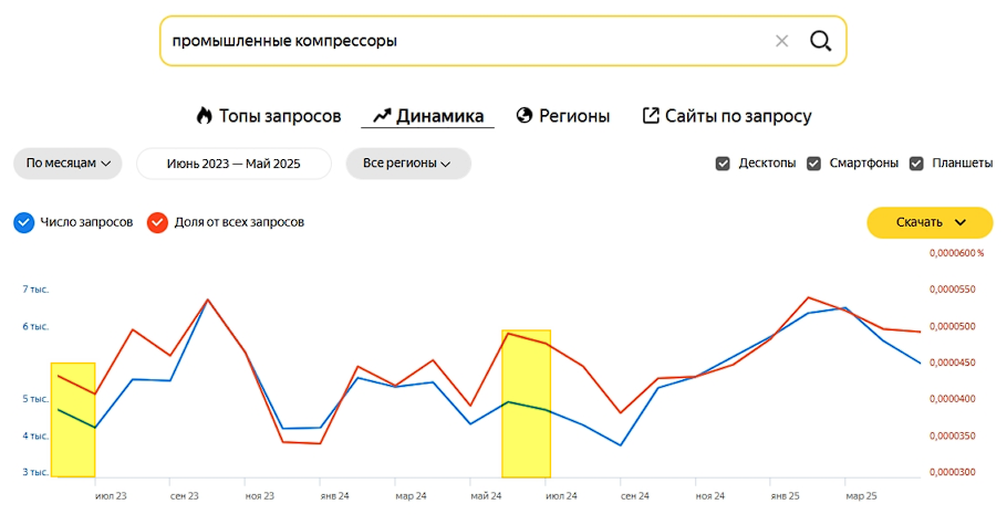 Производитель винтовых промышленных компрессоров решил сделать Яндекс Директ стабильным источником заказов на оборудование. Важно было получать обращения от компаний и масштабироваться по бюджету без падения качества. Поэтому я начал с основы: разобрался, что именно продаётся и как это покупают в B2B.